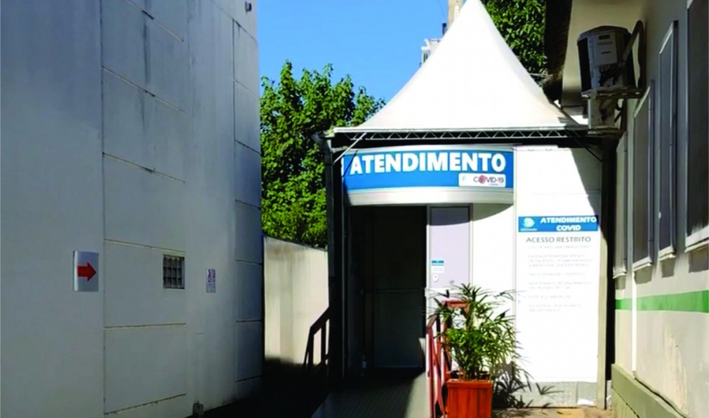 O setor COVID tem acesso pela lateral do HST (corredor esquerdo), mantendo o atendimento pela recepção de urgência e emergência separadamente, evitando o contato de pacientes com sintomas dos demais que utilizam o serviço da unidade de saúde.